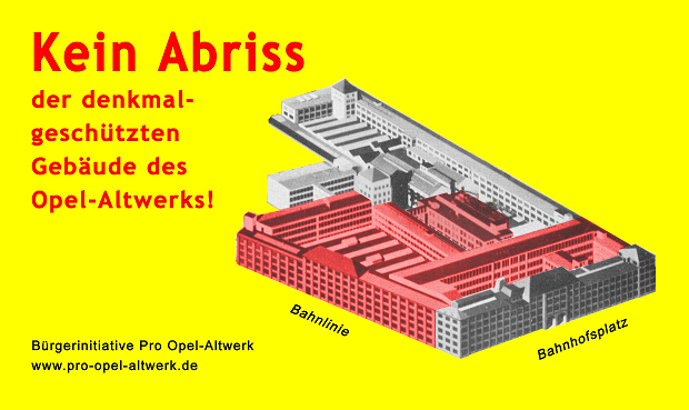 Die Vorschläge der BI Pro Opel-Altwerk zur Nutzung unter Erhalt des denkmalgeschützten Ensembles hier: